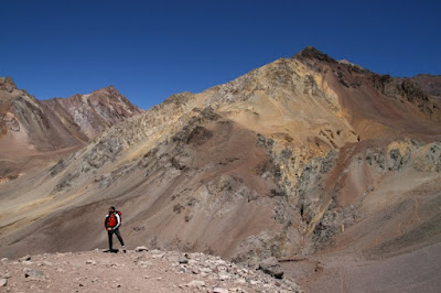 Am fost uimita cum niste munti atat de arizi pot avea in ei toate culorile curcubeului, iar sus de tot albul zapezilor. In trei ore am ajuns in prima tabara, Plaza Confluencia.